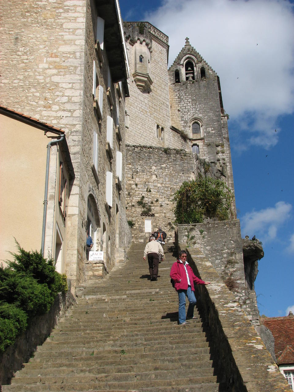 Rocamadour, ein Bilderbuchdorf auf einer Kalkebene der Causse kann wegen der jährlich 1,5 Millionen Besucher und Pilger kann schön touristisch sein. Aber wir haben Glück, es ist schon spät im Jahr und der Touristenstrom scheint schon abzuebben. Außerdem sind wir recht früh von Süden zum Tal der Alzou angekommen, um einen Blick auf die tolle Lage des Ortes zu haben.