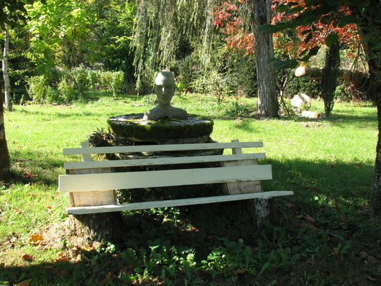 Für die Rückfahrt möchte ich wieder fit sein von meinem Schnupfen; dazu hilft ein Sonnenbad und gute Lektüre im weiten Garten des Hauses von Cenac