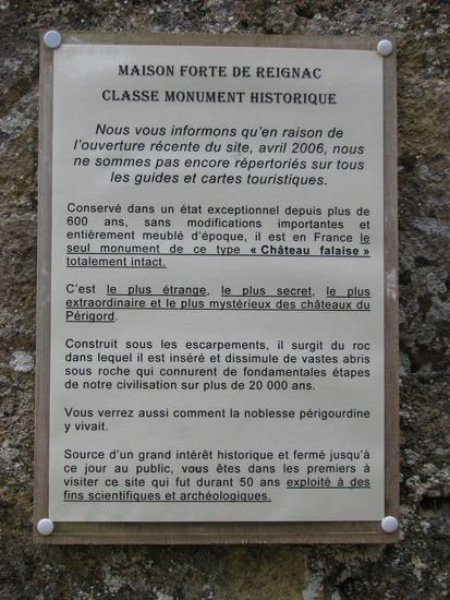 zum neueröffneten Maison forte de Reignac, das noch in keinem Reiseführer steht, da es erst 2006 eröffnete. (Eintritt 2x6,50€ (+Kochbuch 5€)) Das befestigte Haus hat im Prinzip nur eine Mauer, die die Höhle im Fels verschließt. Der ausgiebige Rundgang mit den inzwischen eingerichteten Räume mit zahlreichen Exponaten dauert recht lange, so dass wir Chateau und Jardin de Losse eh nicht mehr hätten besichtigen können. Aber die haben sowieso ab 1.10 geschlossen.!