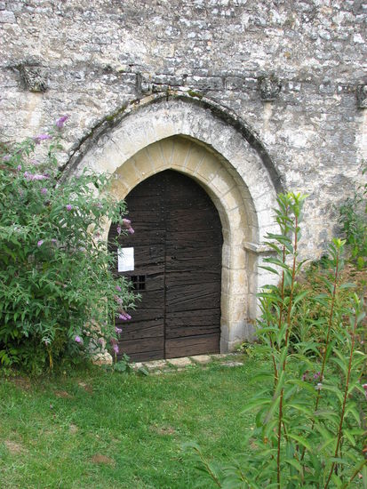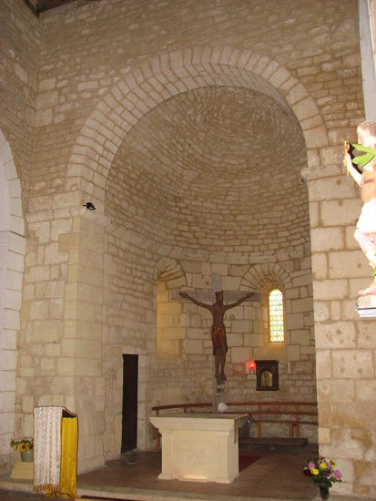 der älteste Bausteil (dunkel) stammt aus dem 11.Jh. - Portal und vorderes Langschiff aus dem 12. Jh. - erkennbar an den Plastiken - Querschiff und Apsis sind erheblich jünger