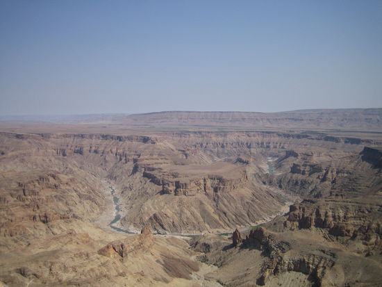 Leider müssen wir am nächsten Tag das Abiqua Camp verlassen, denn in 5 Tagen fliegen wir schon wieder zurück nach Deutschland, dabei sind wir noch mehr als 800 Kilometer von Windhoek entfernt - und das bei diesen Straßen. Erstes Ziel ist heute der Fish River Canyon, der zweitgrößte Canyon der Welt. Dort genießen wir die fantastische Aussicht in die 500 Meter tiefe Schlucht. Schade ist allerdings, dass man nicht hinunterwandern kann, denn der Abstieg gilt als lebensgefährlich und im Tal erwarten einen Temperaturen von 50 Grad. Eine Wanderung ist nur als geführte ca. 4 Tagestour möglich und die Zeit haben wir nicht mehr, mal abgesehen davon, dass uns das gerade auch zu anstrengend ist.