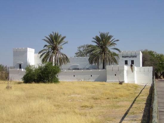 Am nächsten Morgen, Sonntag, 24.08.08 machen wir uns auf in den Etosha Nationalpark. Etosha ist Namibias größter Nationalpark und ist etwa so groß wie Hessen. Der Park ist eingezäunt, um zum einen die vielen Wildtiere vor Wilderern zu schützen, zum anderen aber auch um die Menschen und ihre Felder vor der Zerstörung der Tiere zu bewahren. Nach den ersten Kilometern, die sogar geteert sind, erreichen wir Fort Namutoni, eines der 3 Camps, die es im Park gibt.