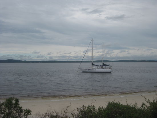 Unser Ziel war naemlich "Port Stephens". Beschrieben wurde "Port Stephens" in unseren Reisefuehrern als traumhaft schoene Bucht mit weissen Straenden, glassklarem Wasser, hunderten von Delphinen und Koalas und huebschen kleinen Doerfchen. War klar, dass man da hin muss!