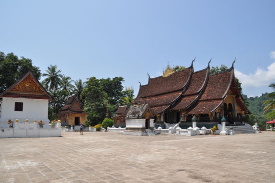 Das ist der Tempel von außen. Bis in die höchste Spitze bin ich geklettert. Von den Balkonen hat man einen atemberaubenden Blick über Luang Prabang und das gesamte Tal.