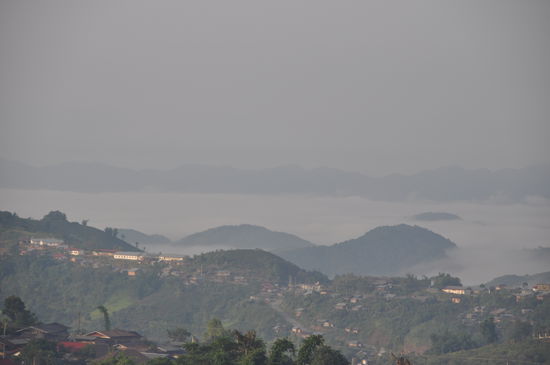 Die Landschaft ist wunderschön und auch wenn es noch so schmerzte im Bus zu sein. Wir kamen durch Dörfer, die ich auf Bildern aus dem 15-16 Jahrhundert kenne. Ein Leben, das mir nicht real erscheint, alles läuft wie ein Film vor mir ab. Am Nachmittag kamen wir in Phongsaly an. Außer Duschen und essen fassen, was in dem Ort gar nicht so einfach war, denn es gab eigentlich nur ein Restaurant, das wir auch am Abend aufsuchten, aber das Essen war grotten schlecht. Der Ort ist unglaublich still und um 21 uhr gingen überall die Lichter aus, auch die Straßenlaternen. Wir machten, dass wir zum Guesthouse (60.000Kip (ca. 6 Dollar)) kamen. Ich fiel in einen Dornröschenschlaf und war überglücklich meine Beine zu spüren und wieder zu haben.