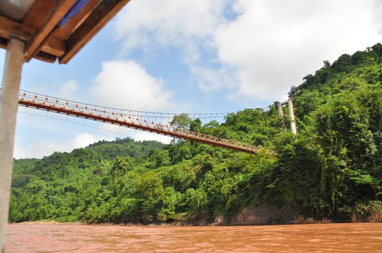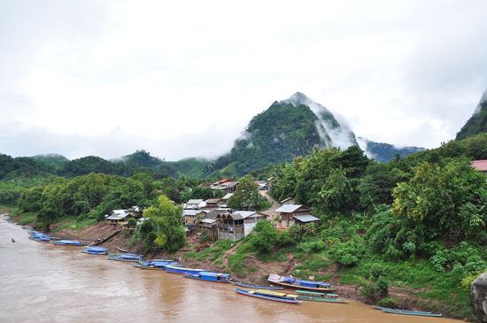 Heute fahren wir weiter und zwar zuerst eine Stunde lang mit einem Localbus nach Hat Sa (weiter nördlich wie Phongsaly) um von dort auf dem Pak Ou ein Boot nach Nong Kiaou zu nehmen. Vorher gingen wir noch bei der netten Frau, die uns egocht hatte vorbei und ich schenke dem 10 jährigen Mädchen ein Buch mit Bildern(untertitelt mit Lao-Englisch), das ich in Luang Prabang im Big Brother Mouse-Projekt gekauft hatte. Die Frau erzählte am Abend zuvor, dass die kleine unbedingt Englisch lernen will, aber sie dasGeld für ein Schulbuch zu kaufen nicht haben. Sie freute sich sehr über das Buch und ich weiß, dass es da wirklich gut aufgehoben ist. Wenn ich wieder komme, werde ich der Kleinen sicher noch weitere Bücher mitbringen.