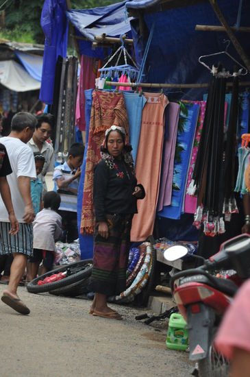 Am Nachmittag besuchten wir noch den lokalen Markt. Ich bin die einzige Touristin in diesem Ort, es gibt keine touristische Infrastruktur. So werde ich doch von vielen sehr intensiv begutachtet und auch von den Frauen angefasst um zu sehen ob auch alles echt ist. Mit einem lächeln im Gesicht lasse ich den TastTest über mich ergehen .   Am Abend rufe ich in Luang Prabang im Muang Lao Guesthouse an um Pack (eine der Staffs) zum Geburtstag zu gratulieren. Sie ist völlig aus dem Häuschen, dass ich anrufe. Eigentlich war ich zu ihrer Geburtstagsparty eingeladen, aber leider ließ sich das zeitlich nicht machen. Aber sie freute sich sehr. über meinen Anruf.