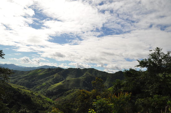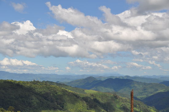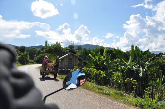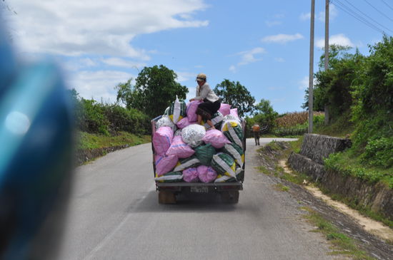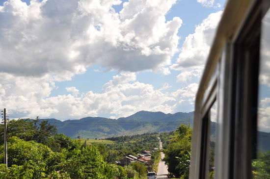 Nächster Tag: Um 8 Uhr fährt unser Local Bus von Xam Neua nach Phongsavan. Er ist klein, auf einer Seite befinden sich zwei Sitze und auf der anderen Seite nur ein Sitz. Auch diese Sitze sind wieder auf Lao-Maße geschnitten. Jedoch ist dieser Bus nicht ganz so voll gepackt und Thai kann seine Beine in den Gang strecken, damit ich etwas quer sitzen kann. Der Weg ist das Ziel, es ist unglaublich schön und interessant. Ich würde am liebsten alles in mich aufsaugen und nie mehr vergessen. Wir kommen durch Dörfer die überwiegend Weben, oder durch Dörfer die schmieden (Macheten, Messer), durch Dörfer die Körbe Flechten, durch Dörfer die Chilischoten am Straßenrand trocknen, Dörfer die Mais ernten und an den Häusern zum trocknen aufhängen, und und und...