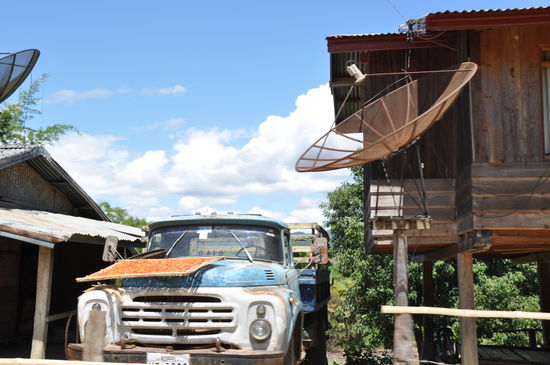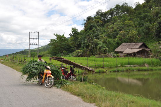 Am nächsten Tag machten einen Ausflug mit dem Tuk Tuk, zu den nahegelegenen Dörfern, konnten aber die Angehörigen der Braut aus Luang Namtha nicht finden. Es war trotzdem sehr schön, allerdings sind die Tuk Tuk Fahrer immer etwas zäh wenn es darum geht anzuhalten oder noch ein weiteres Dorf zu besuchen, da lobe ich mir doch das Motorrad. Die Einfachheit in der die Menschen hier leben ist unglaublich, für uns eigentlich unvorstellbar, aber ich habe nicht den Eindruck, dass sie damit unzufrieden sind. In anderen Dörfern wiederum sieht man eine unglaubliche Armut, zum Teil haben die Kinder nicht einmal Kleider zum anziehen.