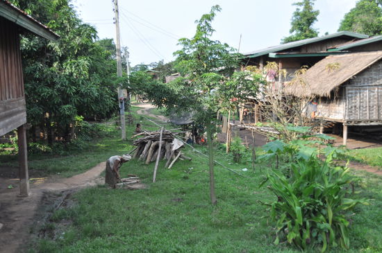 Am Morgen ging es dann um 8 Uhr Richtung Bolaven Plateau los, mit Etappenziel Wasserfall Tad Lo, wo wir zwei Nächte eingeplant haben. Zuerst, und wir sind es ja schon gewöhnt, regnet es in Strömen. Doch als ca. 30 Km hinter uns liegen hört es auf und wir bekommen sogar ein paar Sonnenstrahlen ab. Die Strecke bis Tad Lo ist wunderschön, wir kommen durch kleine Dörfer und jedes der Dörfer hat einen Handwerksschwerkunkt (Körbe flechten, Messerr herstellen, Kaffee-, Tee und Bananenanbau ...). Die Straße ist sehr gut ausgebaut und wir kommen recht schnell vorwärts.