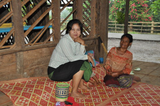Mit der Familie verbrachten wir den Tag bis zum Nachmittag, Die Familie besteht bis auf einen kleinen Jungen nur aus Frauen, die Männer sind alle gestorben.  Der Junge wurde angenommen, weil seine Mutter einen anderen Mann heiratete und er aus diesem Grund nicht mehr in der Familie bleiben konnte. Schon hart, was? Aber das habe ich nun schon öfter gehört, dass der zweite Mann oft nicht bereit ist, das Kind aus erster Ehe in der Familie aufzunehmen. Hinter dem Haus haben die Leute zwei Fischteiche und Fisch gibt es jeden Tag zu essen. Die Familie lud uns ein, sie noch mal zu besuchen, wenn wir wieder in Vientiane sind, dann würden sie "Sindat" (Lao-Fondue, lecker!) für uns machen und wir könnten bei ihnen übernachten. Da freue ich mich drauf. Wir spazierten noch durch die Reisfelder, saßen am Fischteich, aßen zusammen und  fuhren am späten Nachmittag zurück nach Vientiane. Wieder einmal hieß es umpacken (kleiner Rucksack kommt mit, großer wird deponiert) für den nächsten Tag. Das Motorbike habe ich für 8 Tage gemietet und es soll uns in den Süden von Laos bringen. In Pakse werden wir es dann abgeben und mit dem Nachtbus wieder nach Vientiane zurück fahren