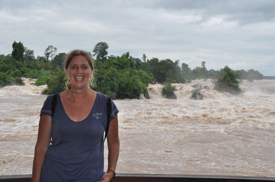 Besuch am größten Wasserfall in der Nähe der kambodschanischen Grenze. Der Mekong war nach dem Taifun wild und übervoll.