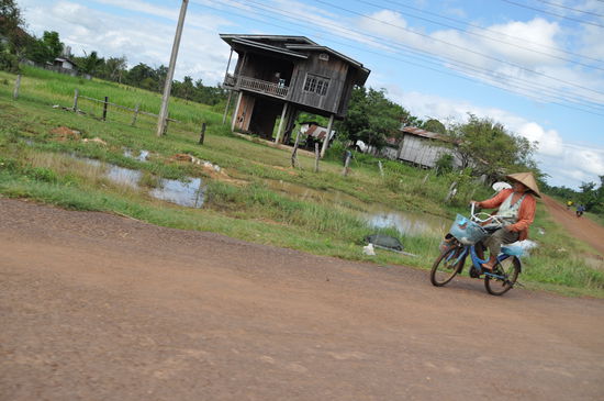 Abfahrt um 9 Uhr, nach Pakse. Die Kleider sind zum Glück trocken geworden. Doch es regnet immer noch und wir haben nun die letzten 300 km vor uns. Auch Heute regnet es den ganzen Tag, meine Finger sind aufgeweicht und sehen aus wie die einer Wasserleiche. Die Landschaft ist grandios, ein Reisfeld jagt das andere, jedoch ist der Regen zeitweise so stark, dass ich mich hinter meinem Fahrer verstecke. Immer wieder kommen wir an Seen (oder sind es große Pfützen??) vorbei. Um 15 Uhr erreichen wir Pakse. Hier war ich zu Beginn meiner Reise schon einmal für ein paar Tage. Wir mieteten uns wieder in Pakse Hotel ein. Es ist zwar nicht ganz so billig wie die anderen (400000 Kip), aber es ist doch angenehm nach den Strapazen ein gutes Hotel zu haben. Außerdem kann ich im Hotel mit meinem Labtop umsonst meine E-Mails checken und mit meiner Familie skypen. Hach war das schön sie zu hören. Bei meinem ersten Besuch mietete ich mir ein Bike, um eine Rundtour über das Bolaven Plateau zu machen, doch die Straße war weggebrochen und ich musste meinen Plan aufgeben. Morgen werden wir es wieder versuchen, aber diesmal wird es wohl klappen , so hoffe ich zumindest. Außerdem kann die Cross-Maschine auch schlechtere Straßen meistern.