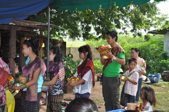 Thais Familie bei der Vorbereitung eines buddhistischen Abschiedsfestes mir zu Ehren. Mann, war das toll. in Folge ein paar Bilder -- Der Höhepunkt meiner Reise.