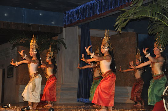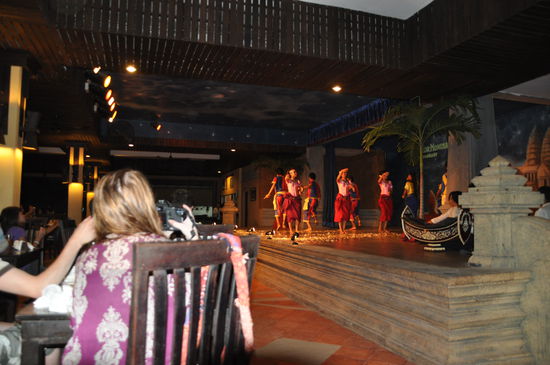 Er brachte mich zu einem Tanz-Theater-Restaurant. In Kambodscha war in der Zeit von Pol Pot vieles verboten unter anderem auch der sehr alte Tanz Apsara. Nach der grausamen Zeit dieses Diktators gab es noch ein paar alte Leute die diesen Tanz den Juengeren zeigen konnte und so ist er zum Glueck nicht ganz verloren gegangen.