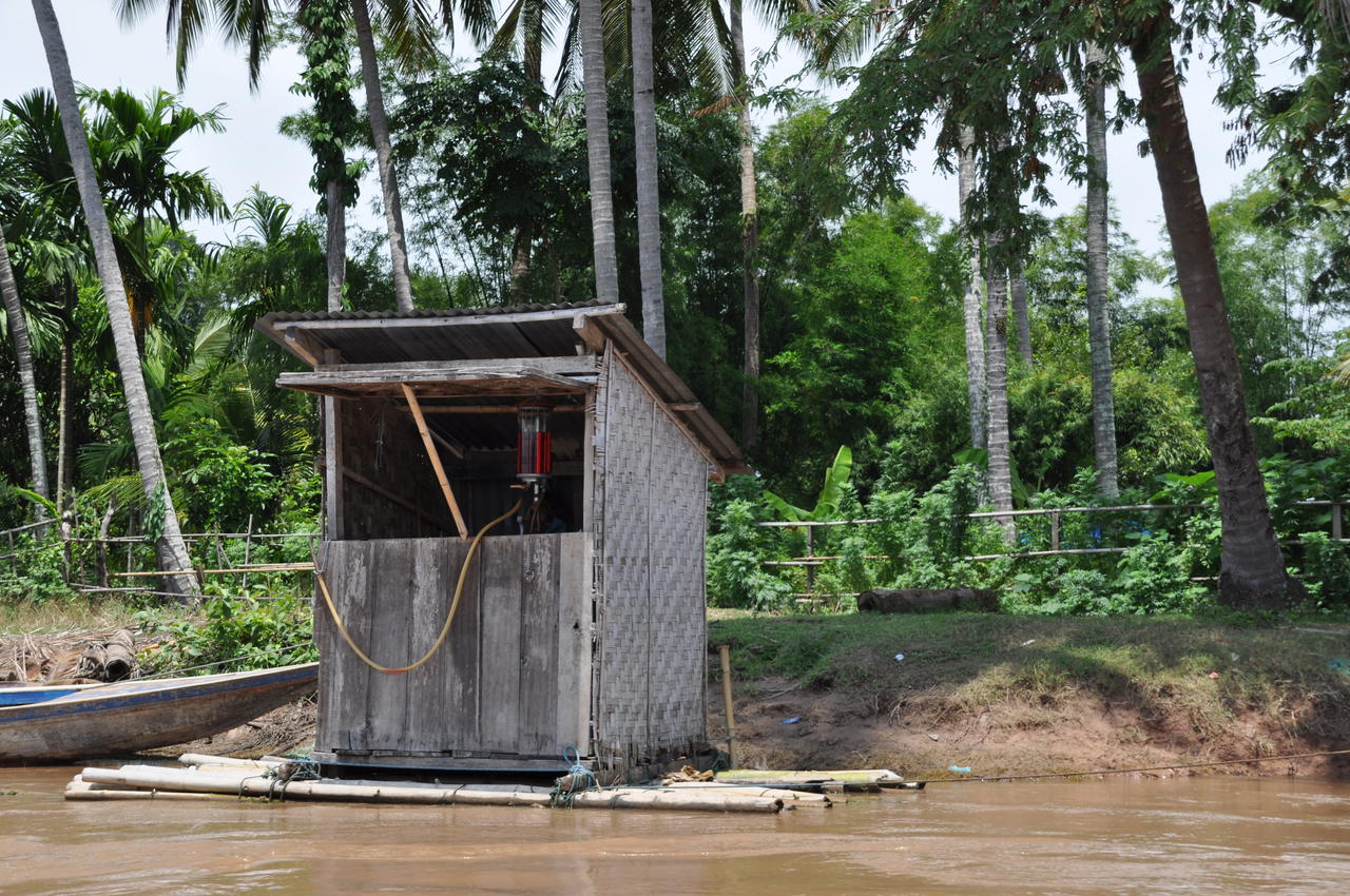 Der Opi, der mich schon mal mit dem Boot an den Hafen gebracht hatte, fuhr mich auch jetzt, die Schwester der Familie begleitete mich, fand ich ja voll süß. Auf dem Festland beim Minibus angekommen traute ich meinen Augen nicht. 20 Leute standen da und wollten mit dem Bus fahren, wie soll das gehen? Ein Minibus mit 14 Sitzen? Es geht, es geht alles in solchen Ländern. Das Gepäck wanderte auf das Dach (nur gut, dass ich nur zwei kleine Rucksäcke dabei habe), mit Plastikstühlen wurde der restliche Freiraum im Autoinneren aufgefüllt, vorne saßen inkl. des Fahrers vier Leute, der Rest quetschte sich auf die Sitze und die priveligierten waren dann die Leute auf den Plastikstühlen . Die Klimaanlage schaffte es nicht den Innenraum zu kühlen. Zum Gück hatte ich noch eine Reisetablette die mich schläfrig macht und ich bald in eine Art Wachtraum fiel. Nach 2 ½ Std. war der Spuk vorbei. Ich lief direkt in das Hotel in dem mein großes Gepäck stand. Der Manager stellte mir ein Zimmer zur Verfügung um zu Duschen und umzupacken, auch konnte ich da noch mal meine E-Mails checken. Danach setzte ich mich auf die wundschöne Dachterrasse von wo man über die ganze Stadt und die beiden Flüsse blicken kann. Ein Junger Kellner, mit dem ich auch lange bei meiner Anreise gesprochen hatte gesellte sich zu mir und er erzählte mir von seinem Studium. Dabei ging die Sonne unter, ich fühlte mich richtig wohl. Aß später noch eine Kleinigkeit und machte mich dann auf den Weg zum Busbahnhof, der zu Fuß in erreichbarer Nähe liegt. Der Nachtbus stand schon da und mir wurde sofort mein Gepäck (wie immer wird es einem fast entrissen  verstaut und ich konnte schon meine zwei Luxusplätze (ein Platz ist für Farangs (erinnert euch: Langnasen) zu klein ), meine Schlafstätte in Beschlag nehmen. Was mir erst viel zu spät auffiel war, dass die Schlafstätte ein riesiges Fenster hatte und draußen ziemlich viel Leute mir beim einrichten zusahen. Na toll. Ich grinste nach draußen, ein breites grinsen aller Zuschauer kam zurück. Nun konnte ich natürlich nicht die Gradinen zu machen, so setzte ich mich weiter der Situation aus, grinste von Zeit zu Zeit nach draußen und dachte, irgendwann würden Sie weg gehen, weit gefehlt. Es kamen immer wieder neue Leute hinzu, mitlerweile winkte ich schon den Kindern und machte Fratzen mit ihnen. Ich kam mir vor wie ein Clown im Schaufenster . Meine Schlafstätte hatte um das Fenster herum rosarote Schabraken an denen rosa Bommeln hingen , weinrote Stoffwände. Zu allem hatte ich noch meinen wunderschönen leuchtend orangefarbenen Seidenschlafsack ausgelegt und mein grün-blaues T-Shirt tat noch seines dazu. Schade dass ich niemanden hatte der das fotografieren konnte. Aber ein Bild von meiner Schlafstätte habe ich. So langsam füllte sich der Doppeldeckerbus. Es stellte sich heraus, dass ich meine Schlafstelle gut gewählt hatte und zwar ganz weit vorne und unten. Oben war es sicher nicht einfach, denn in der Nacht wackelte der Bus ganz schön hin und her und es war unten schon nicht leicht die Balance zu halten. Ich konnte aber echt gut liegen, mein Kopf konnte schlafen wenngleich mein Körper mit ausbalancieren beschäftigt war.