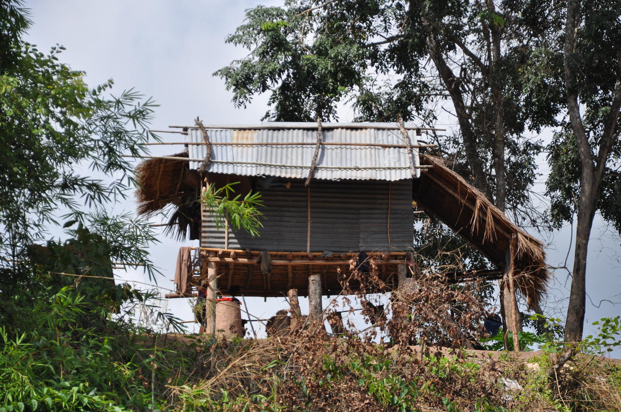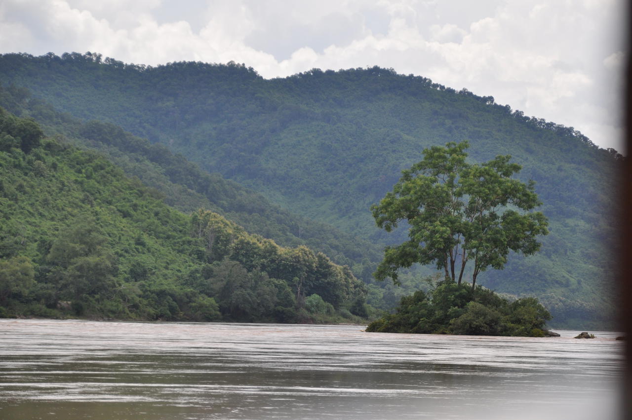 Die Fahrt ging die meiste Zeit durch ungebändigten Dschungel, Stromschnellen fordern den Kapitän immer wieder heraus, immer sehr aufmerksam meistert er alle. Ab und zu halten wir unterwegs und nehmen ein paar Leute Am Uferrand auf oder welche verlassen das Boot ins Nichts. Von Zeit zu Zeit tauchen kleine Anhäufungen von Häusern auf. Sobald die Bewohner das Boot hören (derMotor ist sehr laut), kommen die Dorfbewohner an den Uferrand gerannt und schauen wie wir vorbeifahren. Kinder winken vom Uferrand und schreien ein überschlagendes Sabaidee. Bei einem Dorf winken die Dorfbewohner das Boot heran. Sie halten zappelnde Fische in die Höhe. Das ließ sich der Bootsmann nicht entgehen, er steuerte sofort sein Boot ans Ufer und die Einheimischen im Boot gehen sofort zum Verhandeln über. Alle vom Dorf kamen, sogar die Tiere, Hunde, Kühe, Wasserbüffel, Schweine. Alle Altersklassen düsen am Uferrand herum und begutachten neugierig die Fremden. Man kann sich vorstellen, dass das Ankommen eines Bootes ist, für sie so spannend ist wie ein Fernsehprogramm. Strom gibt es nicht in den Dörfern. Irgendwann war der Fisch verkauft und die Fahrt konnte weiter gehen.