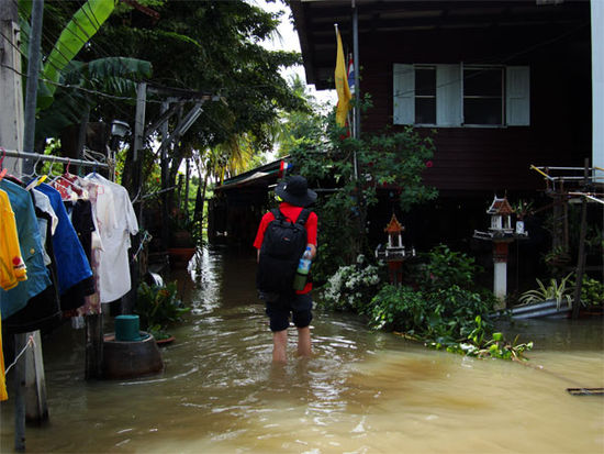 Arnold stapft durch das ueberschwemmte Ko Kret