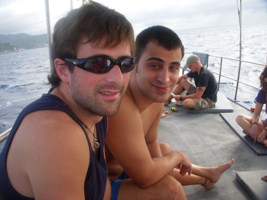 In Koh Tao gingen wir an 2 Tagen Tauchen. Am ersten Tag hatten Dani uns Anas immer noch Uebungstauchgaenge mit ihrem Tauchlehrer, waren aber auf dem selben Boot wie wir, was natuerlich super fuer uns war. Die Tauchspots waren "Hin Wong Pinnacle" und "Hin Wong Bay".