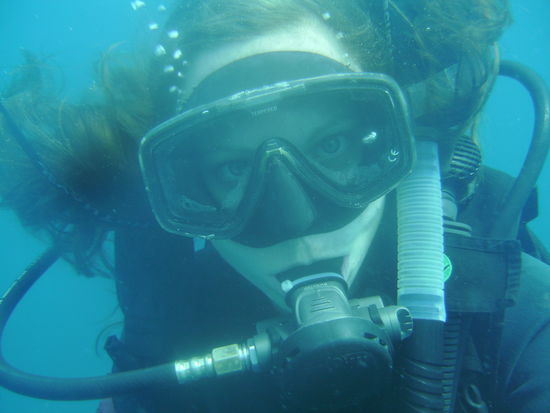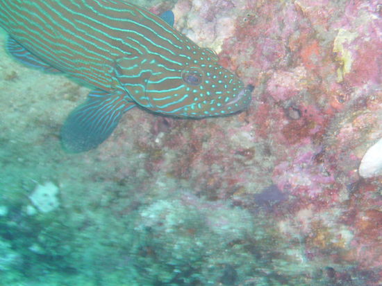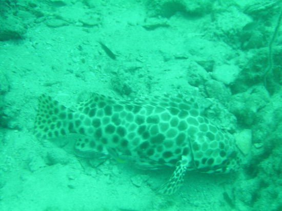 Hier ist er, ein noch "kleiner" ca. 4m grosser Walhai. Leider war ich die Einzige mit Kamera und die Sicht war auch net die Beste, sodass dies mein bestes Bild ist. Aber man erkennt ihn.