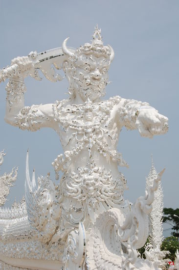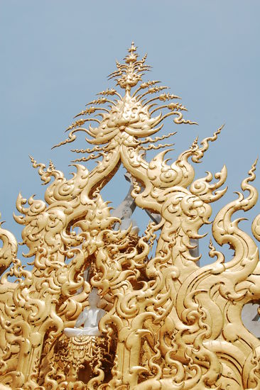 Nächster Halt war die prachtvolle weisse Tempelanlagen Wat Rong Khun zwischen Chiang-Mai und dem goldenen Dreieck. Dieser Tempel war sehr schön und mal ganz anders, da er komplett in weiss erstrahlt. Am Tempel wird von Innen und auch von Außen immer noch gebaut, was wahrscheinlich noch ewig dauern wird, da alles in Handarbeit gemacht wird.