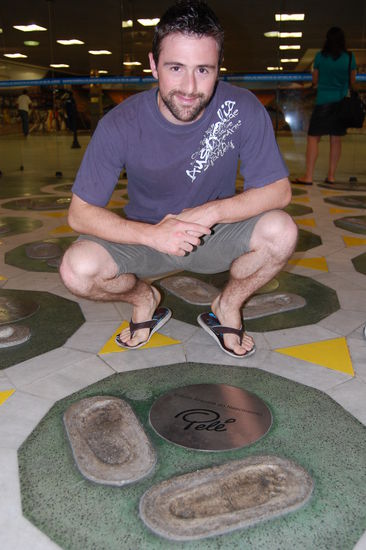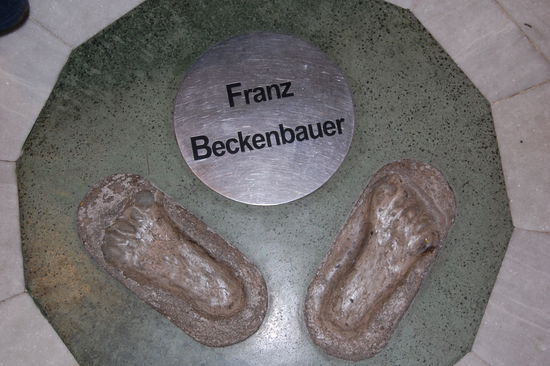 In das Stadion hinein sind wir dann nicht, weil Stefan es nicht eingesehen hat, fast 20 Euro Eintritt zu bezahlen. Dafuer gab es davor sowas wie in Las Vegas, lauter Fussabdruecke von wichtigen Spielern, aber seht selbst die Fotos...