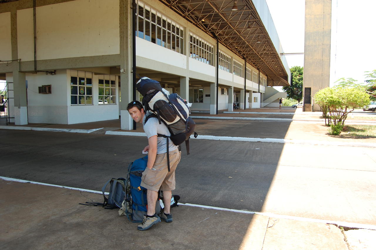 ... war total easy. Da der Busbahnhof von Foz nicht weit von unserem Hotel war, machten wir uns zu Fuss auf. An einer Bushaltestelle namens "Argentina" warteten wir dann auf den Bus mit der Aufschrift "Puerto Iguazú" und stiegen ein. Der Busfahrer war wie immer sehr nett, half uns mit dem Gepaeck, da der kleine Bus schon relativ voll war und wir ganz vorne stehen mussten. Natuerlich stiegen mindestens nochmal 20 Personen ein, dass ist hier kein Problem, da wird halt ein "bisschen" gedrueckt und gequetscht, dann geht das schon. Wir baten den Busfahrer, uns an der brasilianischen Grenze raus zu lassen, da dort normal kein Stop ist, was er auch tat. Also wir mit Sack und Pack zur Grenze, Ausreisestempel fuer Brasilien geben lassen und wieder an die Bushaltestelle hinter der Grenze. Der naechste Bus kam schnell, nur mussten wir nochmal den Busfahrpreis bezahlen, da es eine andere Busgesellschaft war. Nun gut. 3 km weiter kam nun die argentinische Grenze, an welcher der Bus automatisch haelt und auch diesmal wartete, denn Alle mussten aus dem Bus raus, mit Sack und Pack an die Grenze, Einreisestempel fuer Argentinien in den Pass, Gepaeck durchleuchten lassen und alle Mann mit Sack und Pack wieder rein in den Bus. Das war es eigentlich schon und wir hatten keinerlei Probleme. Ausser, dass muss ich jetzt mal erzaehlen, weil das schon mehrmals vorkam, ich(Nadine) hatte das ein oder andere mal "Problemchen" mit meinem Nachnamen, denn die kennen alle kein scharfes S und das scharfe S in meinem Nachnamen im Pass sieht fuer die oft aus wie ein B oder sie sind total verunsichert und wissen nichts damit anzufangen. Wenn ich ihnen dann sage, dass es ein ss ist, sind sie meistens zufrieden. Stefan war dann diesmal an der Grenze schon leicht genervt und meinte: "kannst du das net ma aendern lassen. Wie wird es denn nun richtig geschrieben!?" Tja Mama und Papa, wie ist es denn nun richtig!? Ich gab ihm dann einfach zur Antwort, dass ich das jetzt schlecht aendern lassen kann und falls ich ja irgendwann vielleicht mal heirate, hat sich das Problem eh von alleine geloest. Da schaute er mich nur an und grinste und meinte stimmt auch wieder. Der Bus fuhr dann noch Puerto Iguazú und in einer Strasse wo wir 3 Hostels gesehen hatten stiegen wir einfach aus. Da wir nun endlich mal anfangen muessen zu sparen, enschieden wir uns mal wieder fuer ein Mehrbettzimmer im Hostel Peter Pan. Ein Doppelzimmer haette uns fuer 3 Naechte ca. 120 Euro gekostet und das Mehrbettzimmer (Dorm) nur 50 Euro. Ich schaute mir das Zimmer erstmal an und stellte fest, dass es ein echt schoenes Hostel mit Pool ist. Also nahmen wir das 10 Bett Zimmer, was jedoch in 2 Raeume geteilt ist und wir in dem vierer Raum waren. Bloed war nur, dass wir die beiden oberen Betten nehmen mussten, weil die unteren schon belegt waren, aber dafuer war es sauber und guenstig.