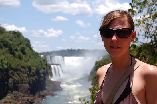 Nach unserer tollen Nacht..., machten wir uns trotzdem morgens um 8 Uhr auf den Weg zu den Wasserfaellen. Mit dem Bus ging es wieder direkt zum Parkeingang. Leider mussten wir diesmal bestimmt 40 Minuten anstehen, was nicht so schlimm gewesen waere, wenn es nicht schon fast 30 Grad gewesen waeren und wir nicht in der prallen Sonne haetten stehen muessen. Ausserdem staendig diese bloeden Reisegruppen, welche frech grinsend an einem vorbeilaufen duerfen *grrr*, das hat man vom individuellen Reisen. Und dann endlich an der Kasse angekommen, freut man sich mal wieder ueber die Eintrittspreise, denn da steht ein Schild, wo drauf steht, dass Einheimische 20 Pesos (ca. 5 Euro) bezahlen muessen und Auslaender 60 Pesos (ca. 15 Euro), dass sind 200 % mehr. Nett oder!? Naja, wenn es dem Schutz der Natur zugute kommt. Aber so ist es oft, dass man in Suedamerika als Auslaender viel mehr bezahlt als Einheimische, daran haben wir uns gewoehnt.