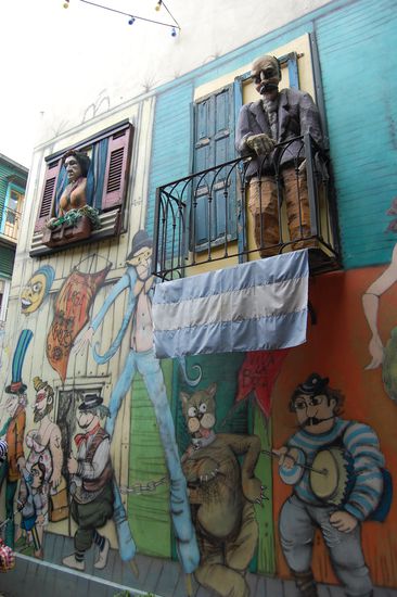 La Boca ist das bekannteste der 48 Stadtviertel von Buenos Aires. Es ist bekannt wegen seiner originellen Häuser. Sie wurden aus Blech von abgewrackten Schiffen gebaut und mit Schiffslack bunt bemalt. Viele Künstler preisen ihre Werke auf den Gehsteigen der Straße El Caminito an.