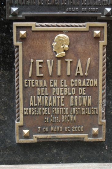 Evita war die argentinische Praesidentengattin von Juan Perón. Sie unterstützte ihren Mann massiv im Präsidentschaftswahlkampf 1946. In ihrer wöchentlichen Radiosendung hielt sie populistische Reden, in denen sie die Armen zum Aufstand aufforderte. Hauptsächlich sprach sie aber über das Frauenstimmrecht. Obwohl sie durch ihre Radioerfolge recht wohlhabend wurde, betonte sie immer wieder ihr eigenes Aufwachsen in Armut, um Solidarität mit den verarmten Klassen zu zeigen. Nach der Wahl Peróns zum Präsidenten nahm Evita sofort eine wichtige Rolle in der Regierung ein, obwohl sie nie ein offizielles Amt bekleidete. Sie gründete die Eva-Perón-Stiftung, eine Institution zur Armenhilfe und die Frauenorganisation der Peronistischen Partei. Ab 1949 wurde sie die einflussreichste Person Argentiniens. Eva Perón starb mit 33 Jahren an Gebärmutterhalskrebs.