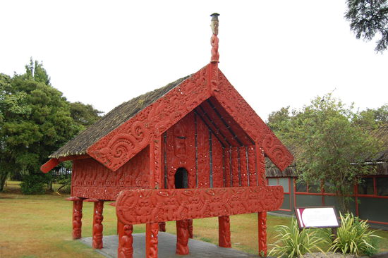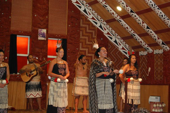 Das Versammlungshaus in welchem wir eine Begruessung nach Maori-Art und den Haka Tanz vorgefuehrt bekamen.