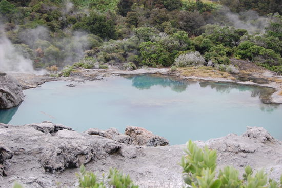 Rotorua ist die Touristenattraktion Nummer eins der Nordinsel, denn schliesslich handelt es sich um eines der dichtesten und zugaenglichsten Geothermalgebiete der Welt. Zwanzig Meter hohe Geysire schiessen inmitten kaleidoskopischer Mineralbecken ihre Fontaenen in die Hoehe, dampfende Schwaden ueberziehen kochende Schlammloecher, verkrustete Minerale haengen wie Stalaktiten von den Sinterterrassen herab - kurz gesagt, Vulkanismus wie er im Buche steht.