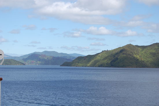 Am 14.02.09 gings dann mit der Faehre von Wellington, durch die Cook Strait (zaehlt zu einer der stürmischsten Meeresstraßen der Welt) nach Picton. Bevor man Picton auf der Suedinsel jedoch erreicht, faehrt man durch die beeindruckenden Marlborough Sounds.