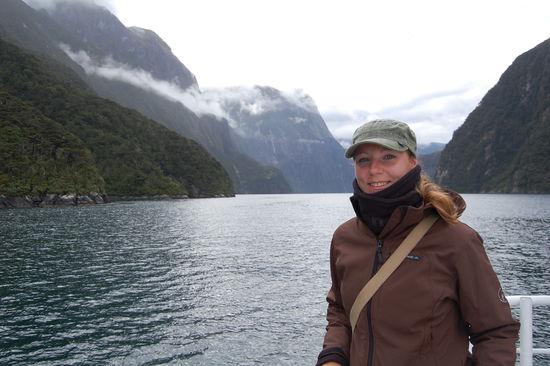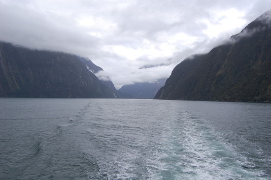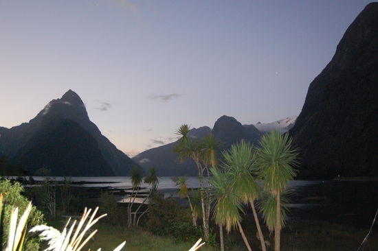 Von Queenstown aus fuhren wir noch am selben Tag zum Milford Sound. Unterwegs buchte ich telefonisch sicherheitshalber die erste Tour fuer den naechsten morgen, was jedoch nicht noetig gewesen waere, da genuegend Platz war. Wir uebernachteten auf einer der Parkplaetze. Da wir Gutscheine unserer Autovermietung hatten, bezahlten wir nur die Haelfte und bekamen an Board sogar Fruehstueck.