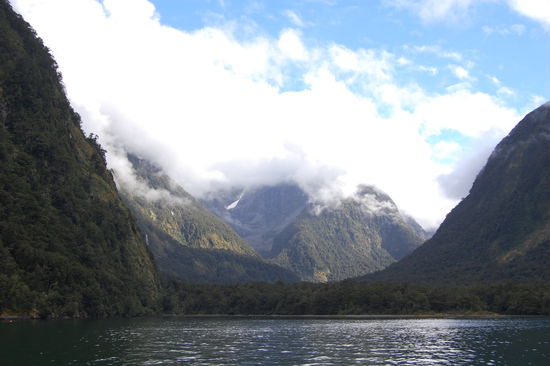Durch Steigungsregen an den direkt anschließenden neuseeländischen Alpen gehört der Milford Sound zu den regenreichsten Gebieten der Erde. Jährlich fallen hier bis zu 8000 mm Niederschlag.