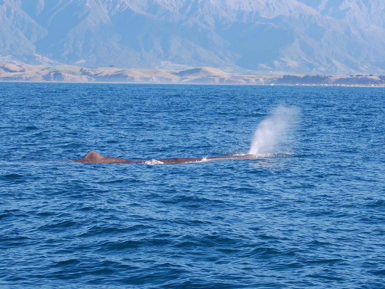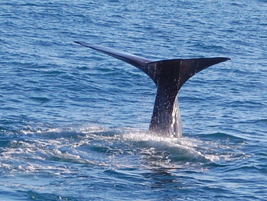 Leider sind Pottwale eher unspektakulaer, da sie nicht wie andere Wale aus dem Wasser springen. Sie tauchen in Tiefen bis zu 2000m und ein Tauchgang dauert 20-80 Minuten. Dann tauchen sie langsam auf, liegen eine zeitland mit dem vorderen Teil des Koerpers an der Oberflaeche, der hintere Teil liegt komplett im Wasser und wenn er wieder abtaucht, geht zuerst der Kopf ins Wasser, dann sieht man sehr schoen seine Rueckenflosse und dann die Fluke bevor er komplett in die Tiefe verschwindet.