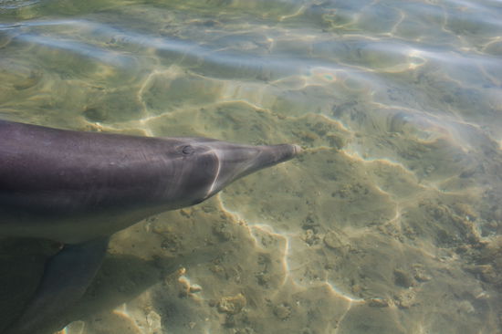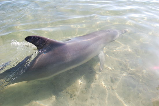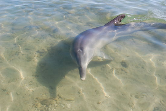 Nachdem wir am 05.03.09 morgens gleich unseren Camper bei Apollo abgeholt haben, entschieden wir zuerst nach Bunbury zu fahren, nach Perth das zweitgroesste Stadtgebiet in Western Australia. Allerdings sind wir nicht wegen der Stadt dorthin gefahren, sondern da wir gelesen haben, dass auch dort jeden Morgen wilde Delphine an den Strand kommen und dies noch nicht so ueberlaufen sei wie Monkey Mia. Also nix wie hin dachten wir und am naechsten morgen sassen wir schon um 8 Uhr am Strand und warteten auf die Delphine! In Monkey Mia werden die Delphine 3x vormittags gefuettert, sodass es sicher ist, dass die Delphine kommen, aber in Bunbury wird das nicht gemacht, weshalb man nie weiss ob sie nun kommen oder nicht. Doch irgendwann sah man sie am Horizont und sie spielten und sprangen eine ganze Weile in der Bucht herum. Nachdem um 9.30 Uhr immer noch kein Delphin in Strandnaehe war, waren wir schon auf dem Weg zu gehen und ploetzlich rief eine Mitarbeiterin des Dolphin Discovery Centers: "There are dolphins in". Und alle rannten wieder runter zum Strand und da war dann unser erster Delphin direkt am Strand