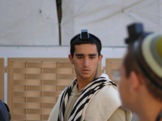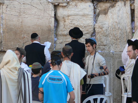 Klagemauer mit vielen strenglaeubigen Pilgern.