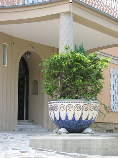 Die beiden Architekten gelten als Neobarock-Spezialisten. Die Schmiedeeisernen Gitter an der Straßenfront erinnern an Arbeiten von Gaudi. Im Pförtnerhäuschen fällt ein Spionfenster mit interessantem Relief.