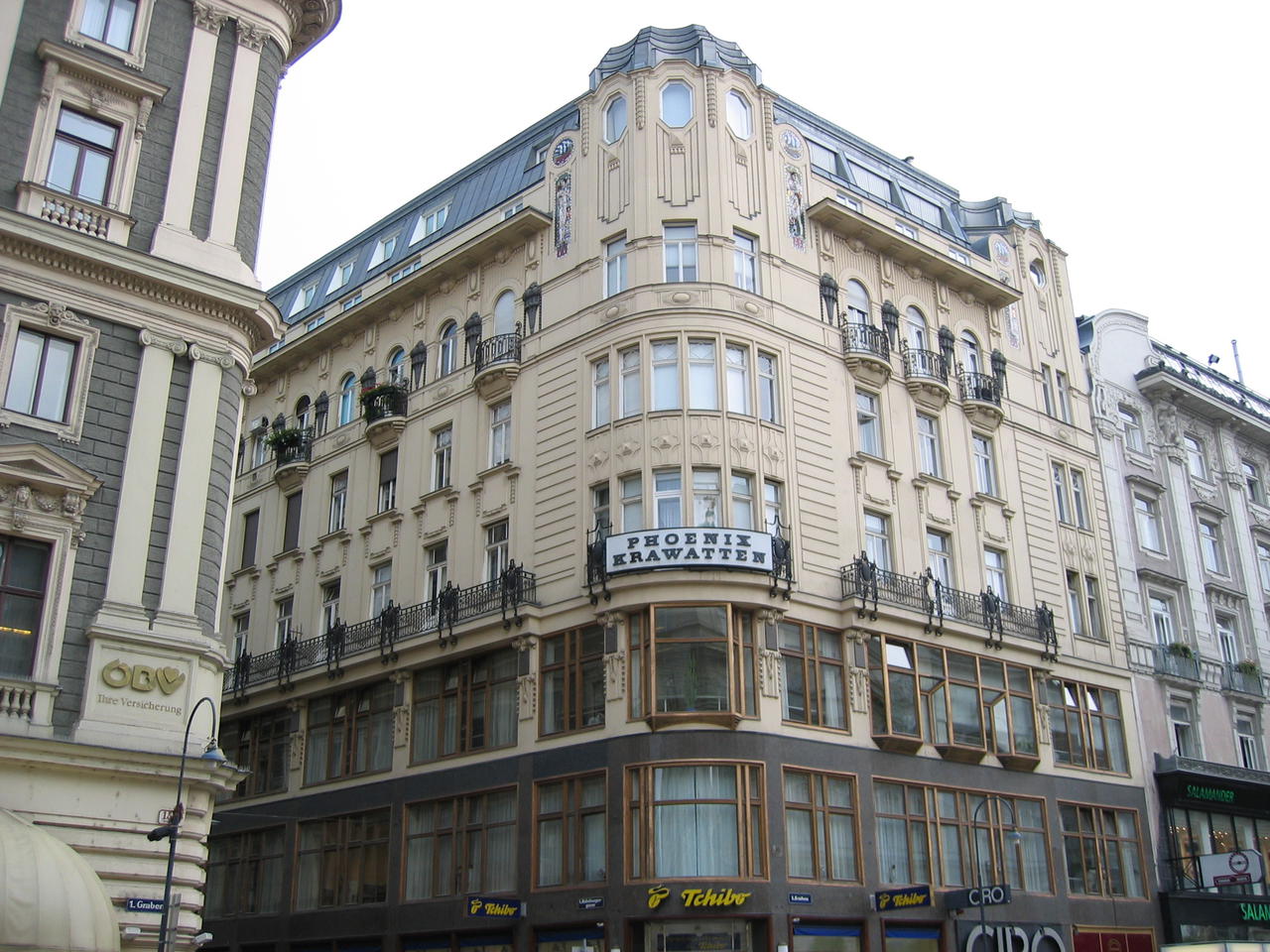 Das Palais Equitable gehört zu den Bauten der späten Gründerzeit, im Erdgeschoß ist die nach Meißen zweitälteste Porzellanmanufaktur Augarten vertreten.