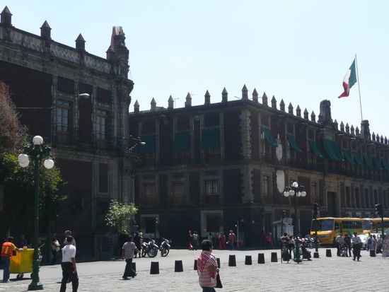 das historische stadtzentrum ist wirklich sehr schoen mit sehr alten imposanten gebaeuden, unglaublich vielen kirchen und museen. ich hatte das gefuehl kilometer zu laufen und doch befand ich mich nur in einem prozent der stadt. irgendwie unvorstellbar. mexico city hat jedoch ein laster und das ist der untergrund auf dem die stadt errichtet wurde. frueher war der ort auf dem mexico city steht ein riesiger see und somit sinken viele gebaeude ab. alles sieht einbisschen aus wie der turm von pisa. das historische zentrum war jedoch eine kleine insel voller azteken staedte und pyramiden. die spanier haben die stadt dann einfach auf den pyramiden errichtet somit befinden sich jahrhunderte alte schaetze unterhalb des zocalo und der ganzen "altstadt".