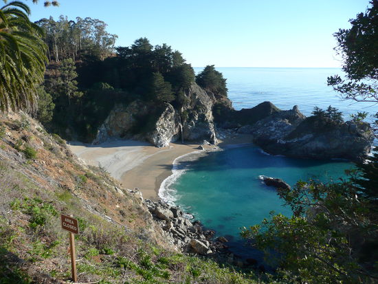 heute fuehren wir nach 'big sur'. das ist wirklich eine unglaublich schoene gegend mit wunderschoenen sandstraenden und hohen klippen. wir haben ein paar ziemlich anstrengende wanderungen gemacht. aber es hat sich jedes mal mehr als gelohnt sich den huegel raufzuquaelen ). morgen fahren wir zum death valley bin ja mal gespannt was diese wueste alles zu bieten hat ;o)