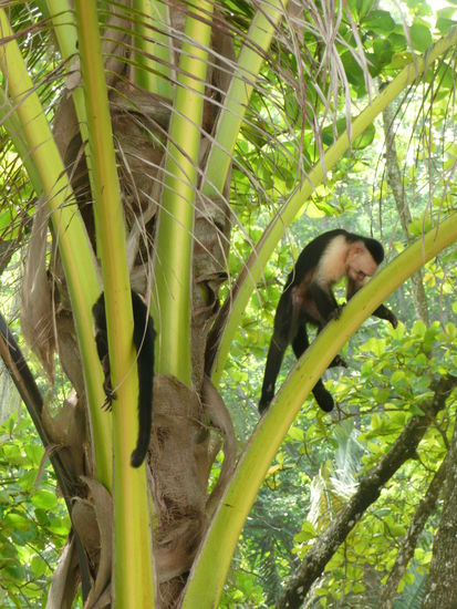 am morgen um fuenf uhr wird man von bruellaffen geweckt und am tag kann man sie beobachten sowie auch die weisskopf aeffchen mit babys.