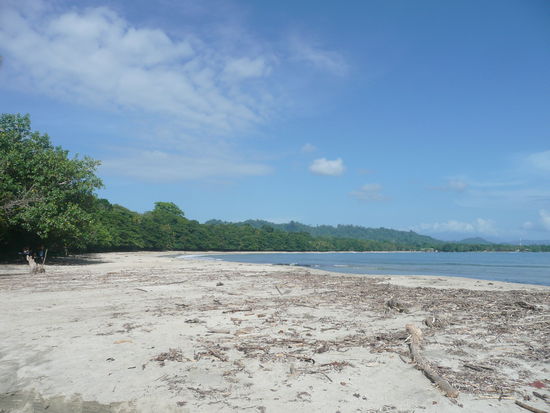 somit haben wir den ersten tag am strand verbracht und am abend gemuetlich einen cocktail in einer bar getrunken. am zweiten tag haben wir uns dann am morgen (nachdem uns die bruellaffen um 05:00 uhr frueh das erste mal geweckt haben) um 08:00 uhr mit einem picknick im rucksack auf den weg in den 7km langen park gemacht. es war wie letztes jahr wunderschoen nur habe ich die vielen affen vermisst. wir haben nur 2 bruellaffen gesehen und ansonsten ausser ameisen und kleinen geckos nichts. macht aber nichts denn der spaziergang und das baden im kristallklaren meer waren einmalig!