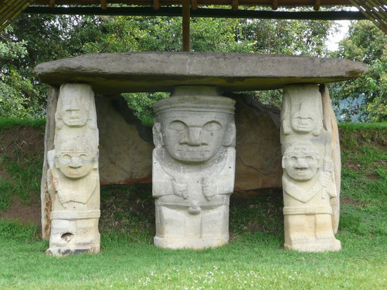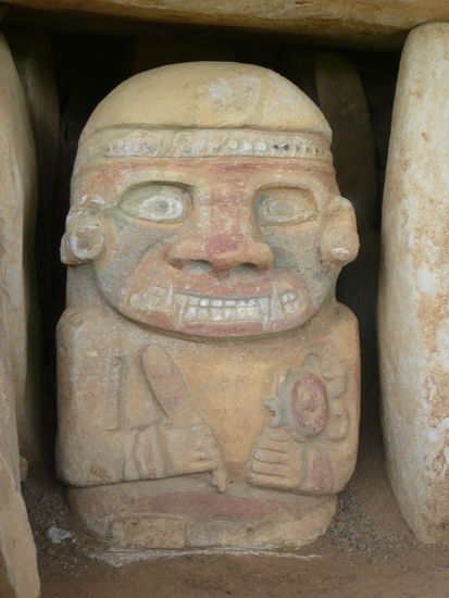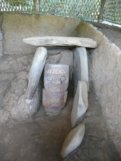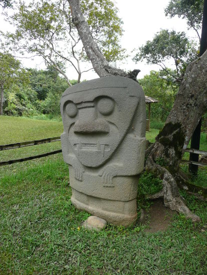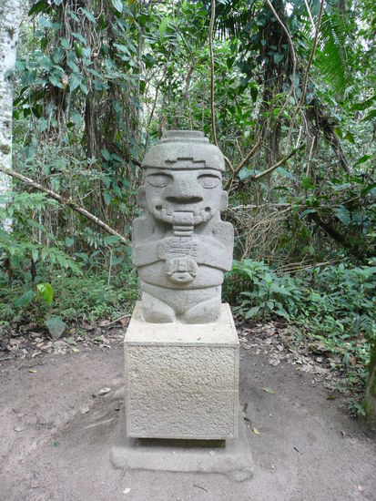 der ausritt war wunderschoen und jedem zu empfehlen! die landschaft ist ein absoluter traum. alles ist gruen und sie besteht aus engen schluchten durch die fluesse fliessen und von den haengen stuerzen sich wasserfaelle in die tiefe... wir haben uns natuerlich auch die unzaehligen steinstatuen, die beruehmt sind fuer san agustin, angeschaut. die einheimischen haben hier frueher ihre toten bestattet und die graeber mit diesen statuen geehrt. diese hinterlassenschaft gehoert zu den wichtigsten archaeologischen staetten kolumbiens. bis jetzt haben archaeologen 500 statuen gefunden und freigelegt. viele sind menschenaehnliche figuren die zum teil realistisch, zum teil wie monster aussehen.
