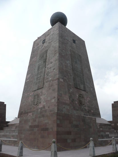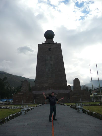 ecuador ist beruehmt dafuer, dass es am aequator liegt und somit laesst man es sich nicht entgehen einmal in der mitte der welt zu stehen. hier geht es unglaublich touristisch zu und her aber einmal im leben zwischen nord-und suedhalbkugel hin-und herzuspringen ist ja auch eine ziemliche sensation... glaubt man... ja so spannend war es nun auch wieder nicht denn es steht einfach in der mitte eines platzes ein riesiges monument mit einer weltkugel oben drauf und die hoehe, laengs- und breitengrad ist angeschrieben. durch das monument fuehrt dann die linie die den mittelpunkt anzeigen soll. leider muss man fuer jedes kleine extra bezahlen sei es fuer das museum, das planetarium und viele andere attraktionen. wir waren trotzdem froh dort gewesen zu sein denn man muss ja mitreden koennen ;o)).