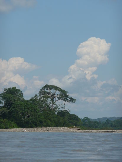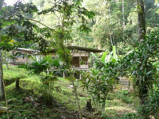 nachdem wir genug gefrohren haben, haben wir uns auf den weg richtung tena gemacht. das hiess zuerst mal einen bus erwischen... um 06:00 uhr morgens standen wir an der panamericana und haben uns einen bus herangewinkt der in unsere gewollte richtung fuhr. beim vierten hat es dann auch geklappt und wir sind mit umsteigen in ambato und in puyo, 10min vor unserem vereinbahrten taxitermin in tena angekommen. unser taxi hat auch schon auf uns gewartet und nachdem ich mich mit mueckenmittel eingedeckt habe ging die fahrt auch schon los richtung dschungel. der weg fuehrte uns ueber misahualli 2 stunden ueber stock und stein richtung gareno lodge. die fahrt war unglaublich amuesant denn der taxifahrer verwechselte die schotterstrasse mit einer rennbahn. wir flogen so zu sagen zur lodge ). anscheinend gibt es in ganz ecuador keine geschwindigkeitsbegrenzung und das hat man gut gemerkt ).