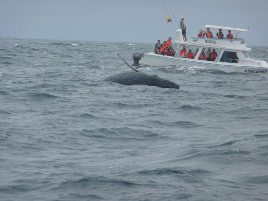 am letzten tag unseres puerto lopez aufenthalts haben wir einen ausflug zur isla de la plata gemacht die 40km nordwestlich von puerto lopez liegt. diese insel wird auch als die galapagos insel fuer die armen bezeichnet. zwei stunden dauerte die bootsfahrt bis zur insel und unterwegs konnten wir buckelwale beobachten. es war unglaublich aufregend die babywale beim springen zuzusehen. es ist einfach faszinierend wie unglaublich gross und doch sanft sie sind!