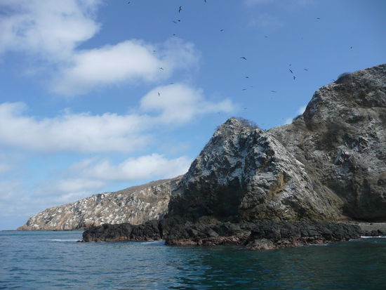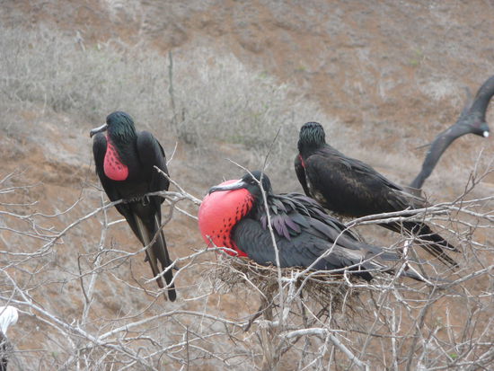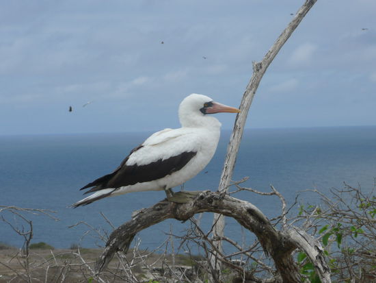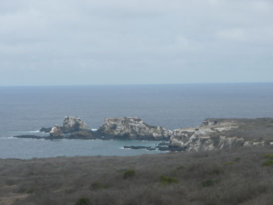 auf der insel angekommen fuehrte uns eine dreistuendige wanderung quer ueber die oede, von der sonne versengten insel. am anfang war das ganze noch nicht wirklich faszinierend, bis wir die ersten tiere gesichtet haben. ausser voegel gibt es eigendlich keine tiere zu sehen ausser 2 schlangen- und 2 gekoarten sind noch heimisch auf der isla de la plata. und da kamen sie in sicht, die tiere die der insel das galapagos feeling uebermitteln... die blue foot bobbies. es war wirklich aufregend diese voegel die ueberhaupt keine angst vor touristen haben mal live zu sehen! unteranderem haben wir auch red foot bobbies, nazca boobies und hunderte fregatt-voegel beim nisten beobachten koennen. leider war der albatros nicht da und der einzige seehund der insel hat wahrscheindlich auch gerade ein bad genommen ).