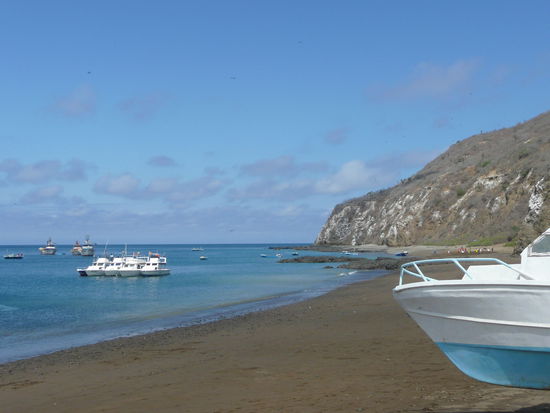 von cuenca aus ging die reise weiter mit evelyn und karin durch den cajas nationalpark der auf 4000m liegt nach puerto lopez an den strand. puerto lopez zaehlt knapp 8000 einwohner und liegt in einer herrlichen bucht mit unzaehligen blauen fischerbooten. auch wenn das doerfchen sehr verschlafen wirkt ist an der strandpromenade immer etwas los. wenn die touristen nicht gerade den marktstaenden entlang gehen und sich wie ich zum teil sinnloses zeug kaufen ) sitzten sie in eine der strandbars und trinken einen leckeren fruechtecocktail. das dorf ist jedoch ehrlich gesagt ausser am meer vorne wirklich nichts sehenswertes und kann einem auch ganz schoen langweilen.